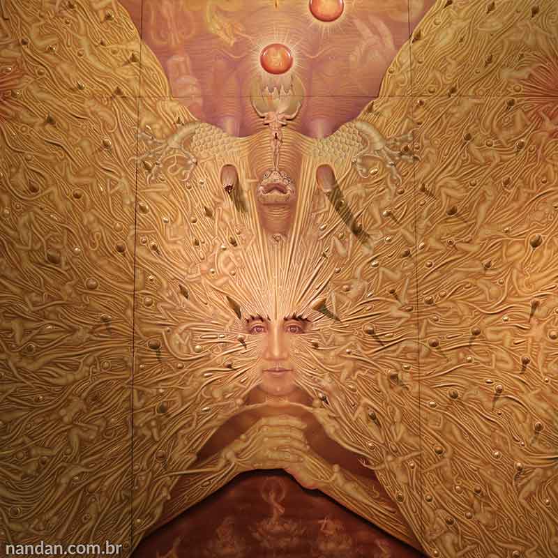 Aqui na Tailândia, eu fiquei intrigado com as muitas pinturas dos templos que eu desconhecia. Existem muitas histórias locais representadas em pinturas místicas.